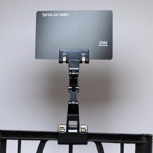 Držač za cene folija sa prstenom pogodan je za isticanje cena na okruglim suhomesnatim proizvodima. Položaj folije u odnosu na prsten može se podešavati okretanjem u svim pravcima. Dimenzije prihvata za foliju su 50x10mm, što omogućuje kvalitetno držanje i većih formata folija debljine do 1mm. Zbog mogućnosti brze i lake promene natpisa, cenovnik folija pogodan je za primenu u slučajevima česte promene cena.