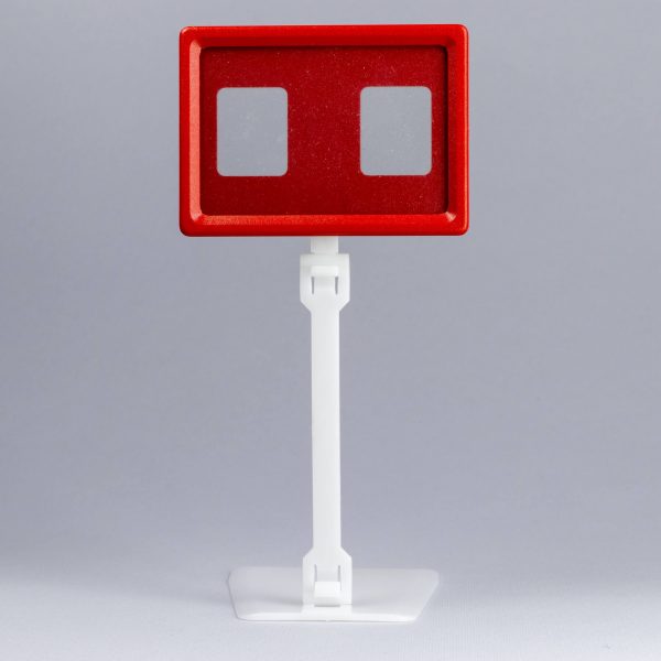 Držač za cene ram A8 sa stopom pogodan je za isticanje cena u rashladnim i toplim vitrinama kao i za druge potrebe. Dimenzije same stope su 60x80x2mm. Zglobna veza omogućuje podešavanje nagiba držača. Stopa sa distancerom od 10cm omogućuje isticanje cena kod viših ili stepenasto slaganih proizvoda.