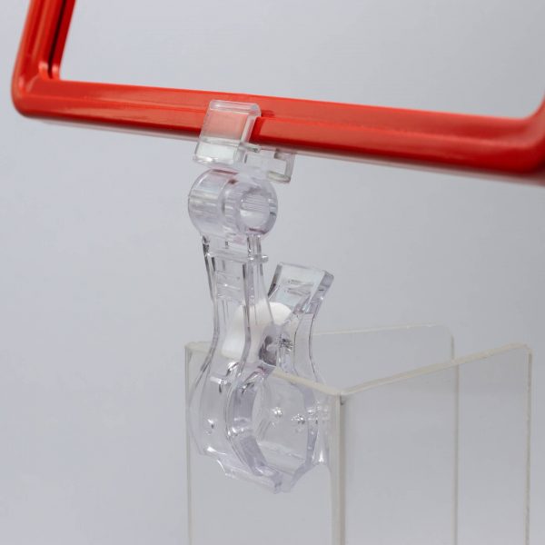 Držač rama štipaljka se koristi za kačenje ramova A5 i A6 na ograde, gajbe i slično. Zglobna veza dozvoljava zakretanje rama u odnosu na noseću štipaljku.
