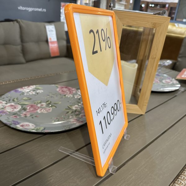 Dužina ovog držača je 10 cm, što ga čini pogodnim za oslanjanje plakatnih ramova formata A5 (210 x 148 mm) i A6 (148 x 105 mm)