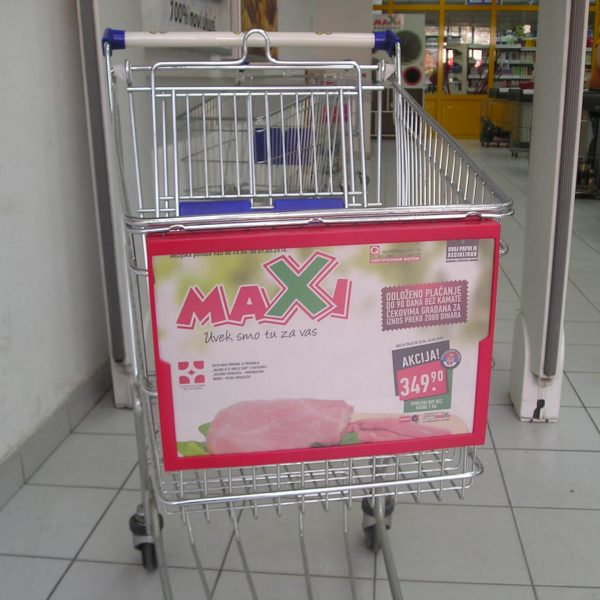 Dupli ramovi za kolica se koriste za direktno obraćanje svakom kupcu, korisniku kolica za kupovinu. Reklamni plakati se jednostavno uvuku u oba rama, postave se sa unutrašnje i spoljne strane prednjeg dela kolica i potom se stave na klik.